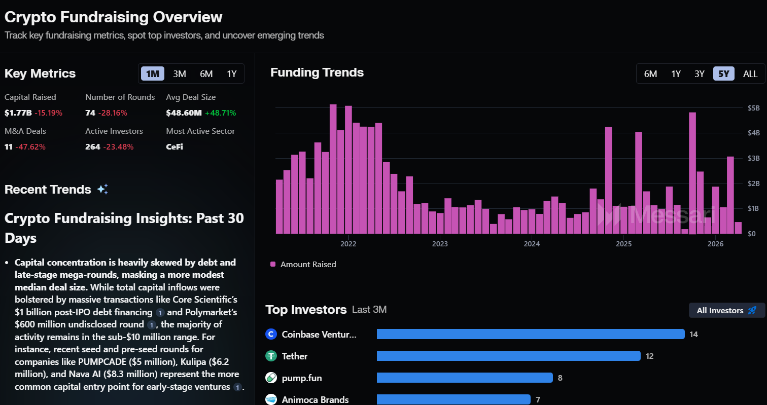 Messari raporlarına göre, kripto sektöründeki yavaşlamaya karşın son bir ayda ortalama fon toplama büyüklüğü yüzde 50 sıçrama yaptı. Yatırımcılar daha titiz seçimler yapıyor. Nisan'da toplamda 466 milyon dolar girişi olurken, Mart ayındaki 3 milyar dolardan belirgin gerileme yaşandı.