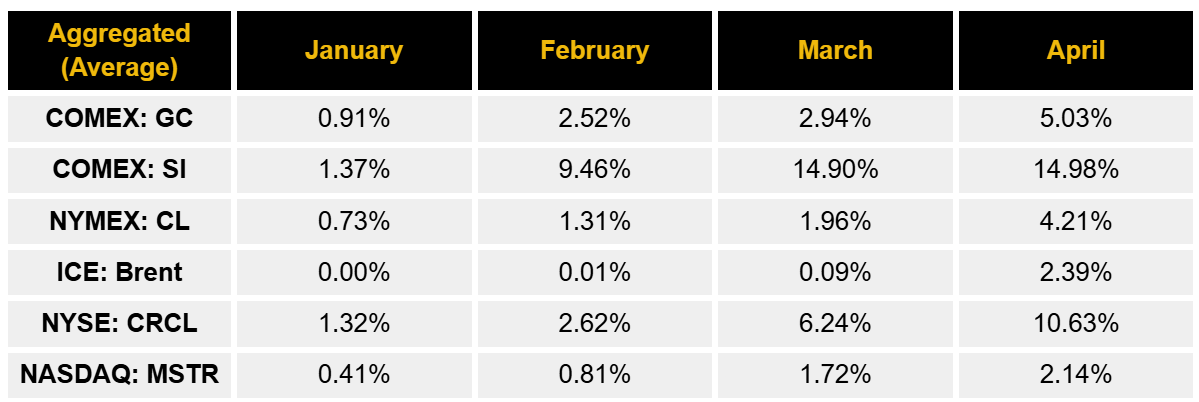 Average Aggregated TradFi-Perps Volume to The Primary Futures Equivalents on Traditional Exchanges. Source: Binance Research